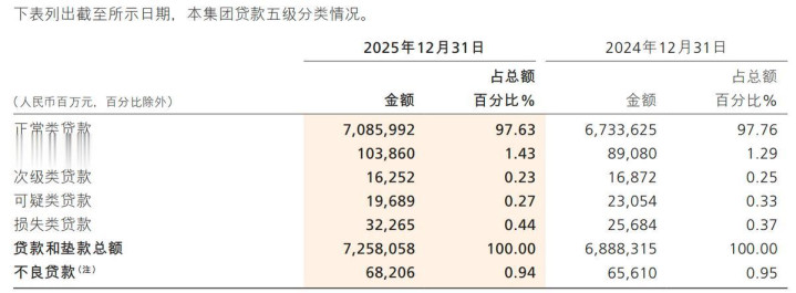 从资产质量来看,2025年,招商银行的不良贷款率为0.94%,较上年末下降0.01个百分点;拨备覆盖率为391.79%,较上年末下降20.19个百分点。